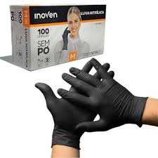 Caixa com 100 luvas de nitrila sem pó da marca Inoven.